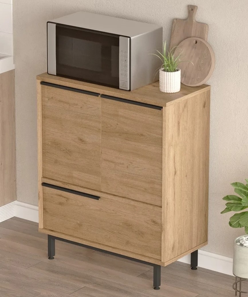 Fabricat din panouri de particule acoperite cu 100% melamina, acest Comoda este construit pentru a dura. Constructia sa robusta asigura o durabilitate de lunga durata, permitandu-va sa va bucurati de beneficiile sale pentru multi ani de acum Incolo. Spuneti adio solutiilor de depozitare subrede si nesigure si investiti Intr-un produs care rezista cu adevarat la testul timpului.