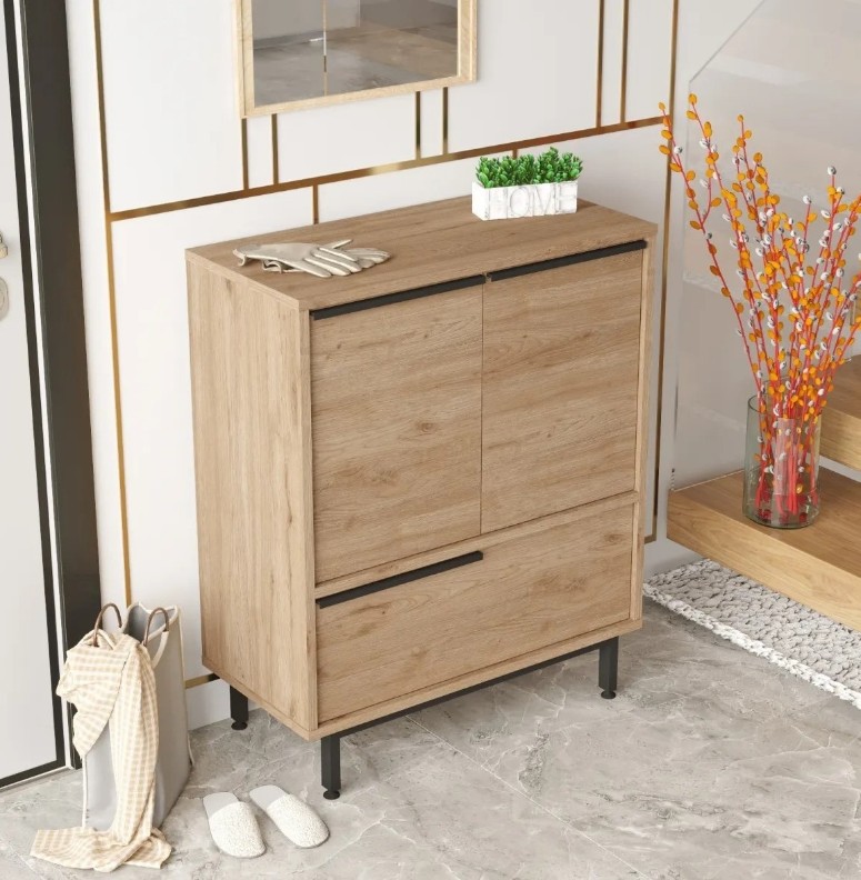 Cu un design modern și elegant, dulapul pentru pantofi adaugă o notă de rafinament în orice cameră. Liniile sale curate creează un aspect armonios și ordonat. Spuneți adio grămezilor dezordonate și întâmpinați un spațiu organizat și plăcut vizual.