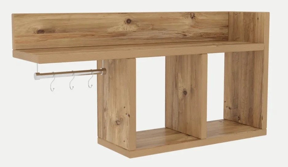 Raftul are mai multe niveluri, oferind spațiu amplu pentru cărți, fotografii și obiecte decorative. De asemenea, este prevăzut cu un cârlig multifuncțional pentru chei, pălării sau eșarfe, ținându-le la îndemână. Spuneți „la revedere” dezordinii și „bun venit” unui spațiu bine organizat.