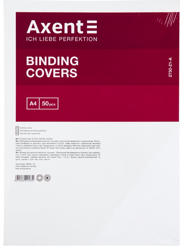 Coperta pentru legarea Axent A4 50pcs White 2730-21-A