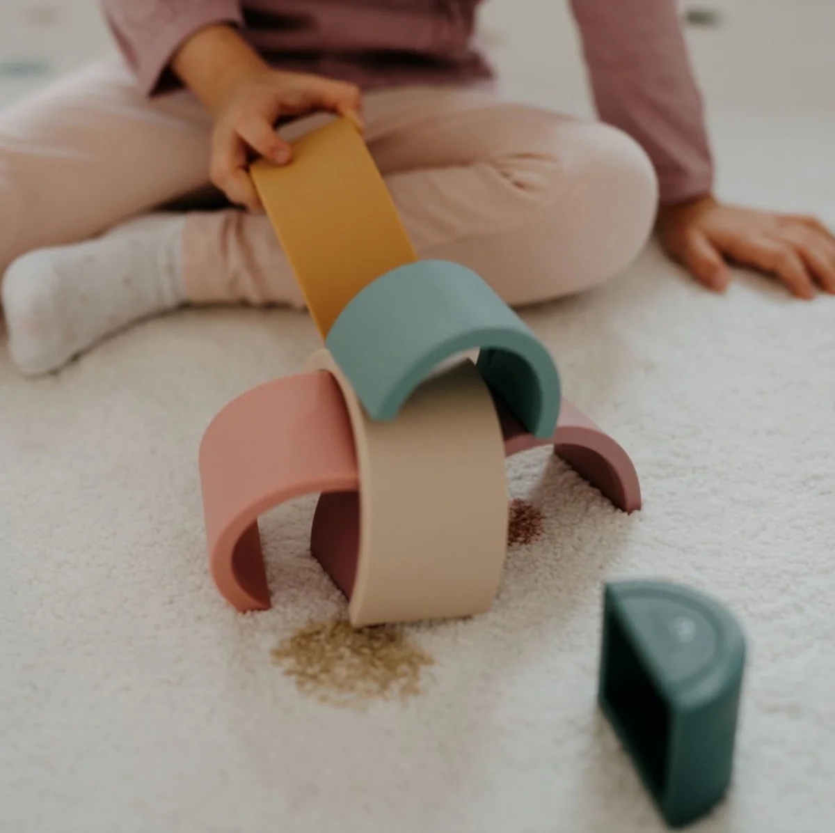 Construirea elementelor sau stivuirea unui arc peste altul este un exercițiu excelent pentru mânuțele mici.
