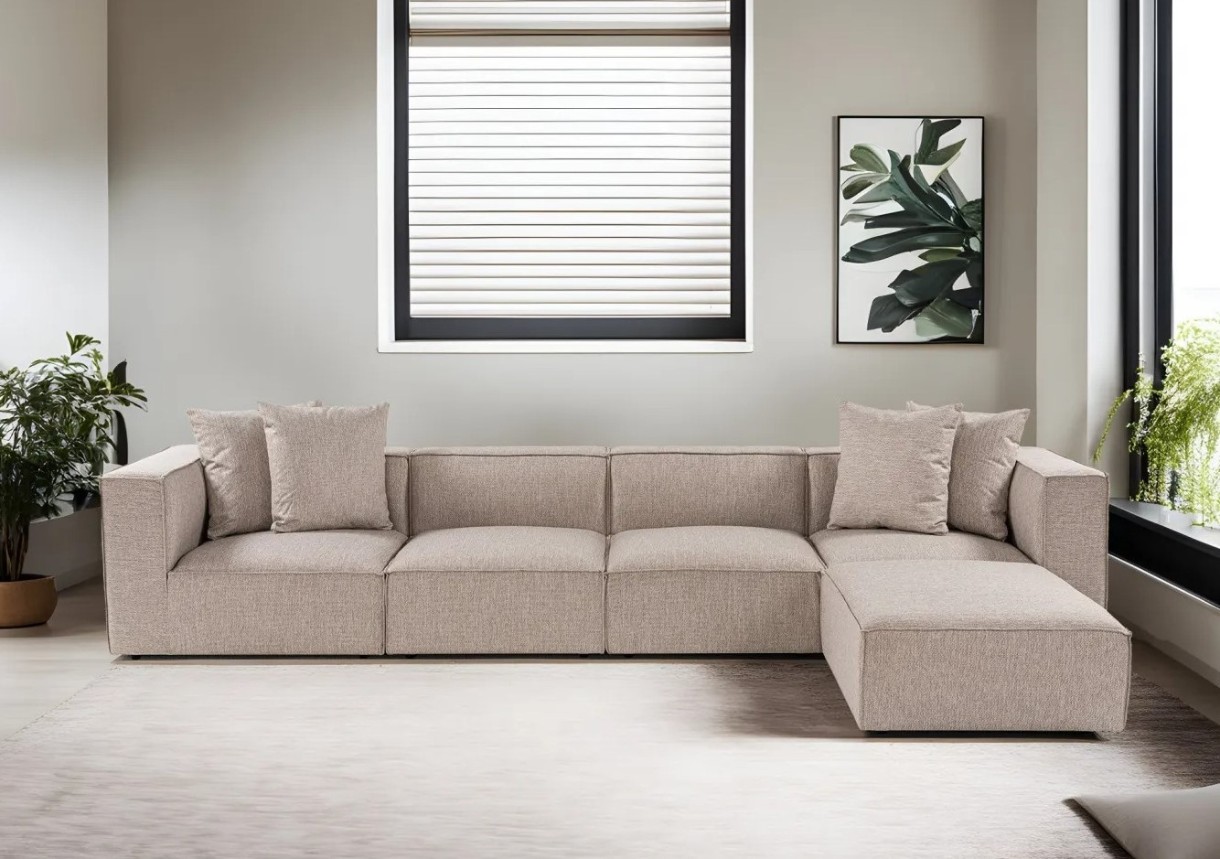 Canapea de colț Trendy Sora L1-O1-O1-1R-POUFFE Beige Sand 350x190x65cm GTR003613
