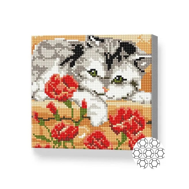 Pictura cu diamante după numere Art Gallery Premium Kitten and poppies 20x20cm (BJ806)