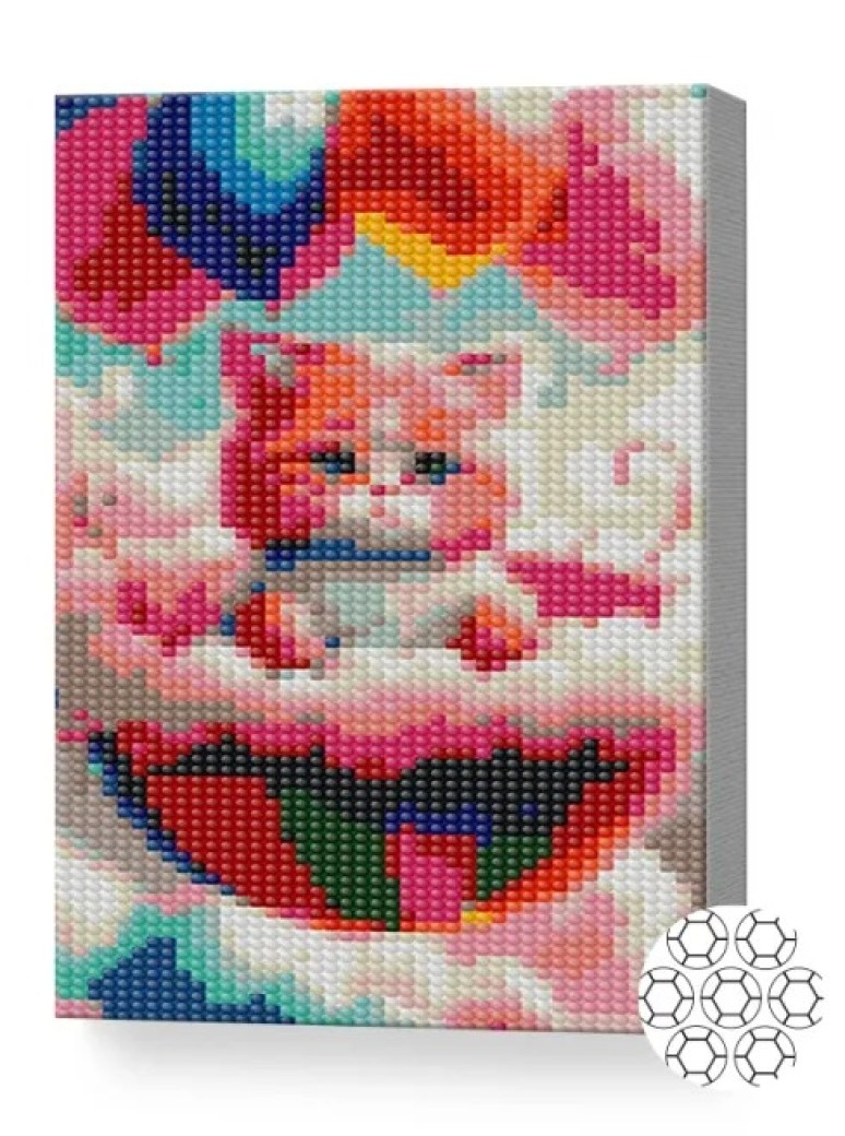 Pictura cu diamante după numere Art Gallery Premium Motănaș printre nori 20x30cm (XQC84433)