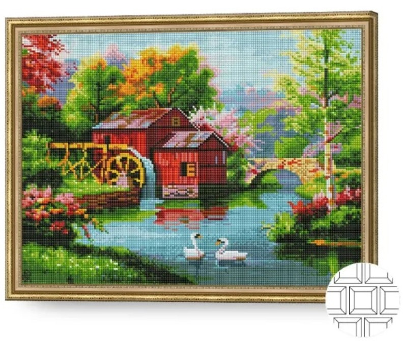 Pictura cu diamante după numere Art Gallery Premium Moară la rău 40x50cm (QB203064)
