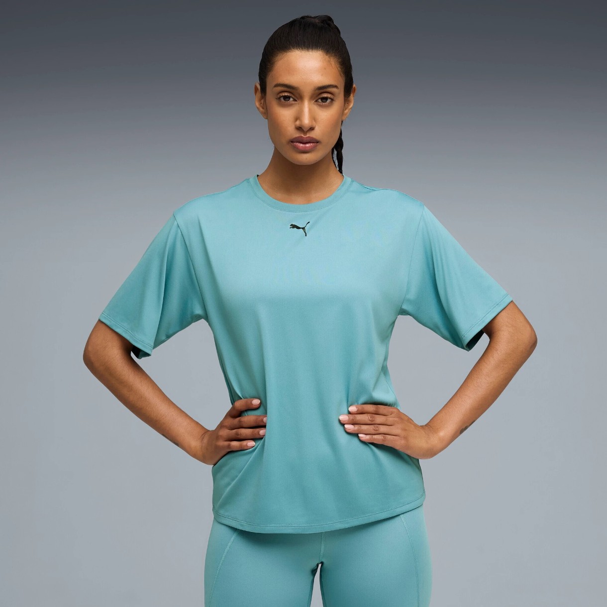 Gâtul rotund creează o linie curată în partea superioară și este potrivit pentru diferite tipuri de siluetă. Logo-ul PUMA Cat de pe piept subliniază discret caracterul sportiv al modelului.