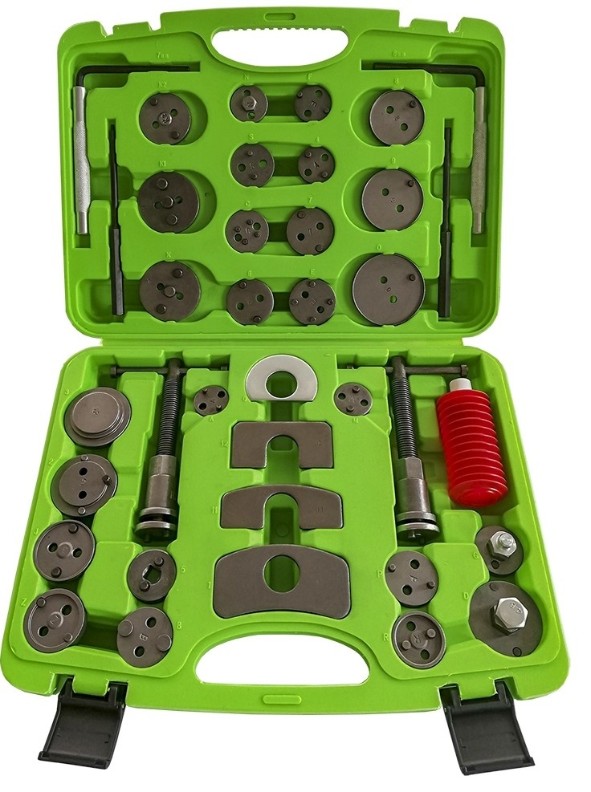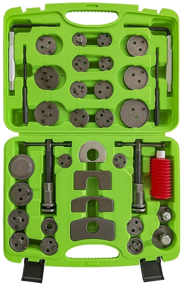 Sistem de uz multiplu cu 37 piese pentru montarea și demontarea pistoanelor de frână. Compatibil cu majoritatea vehiculelor.
