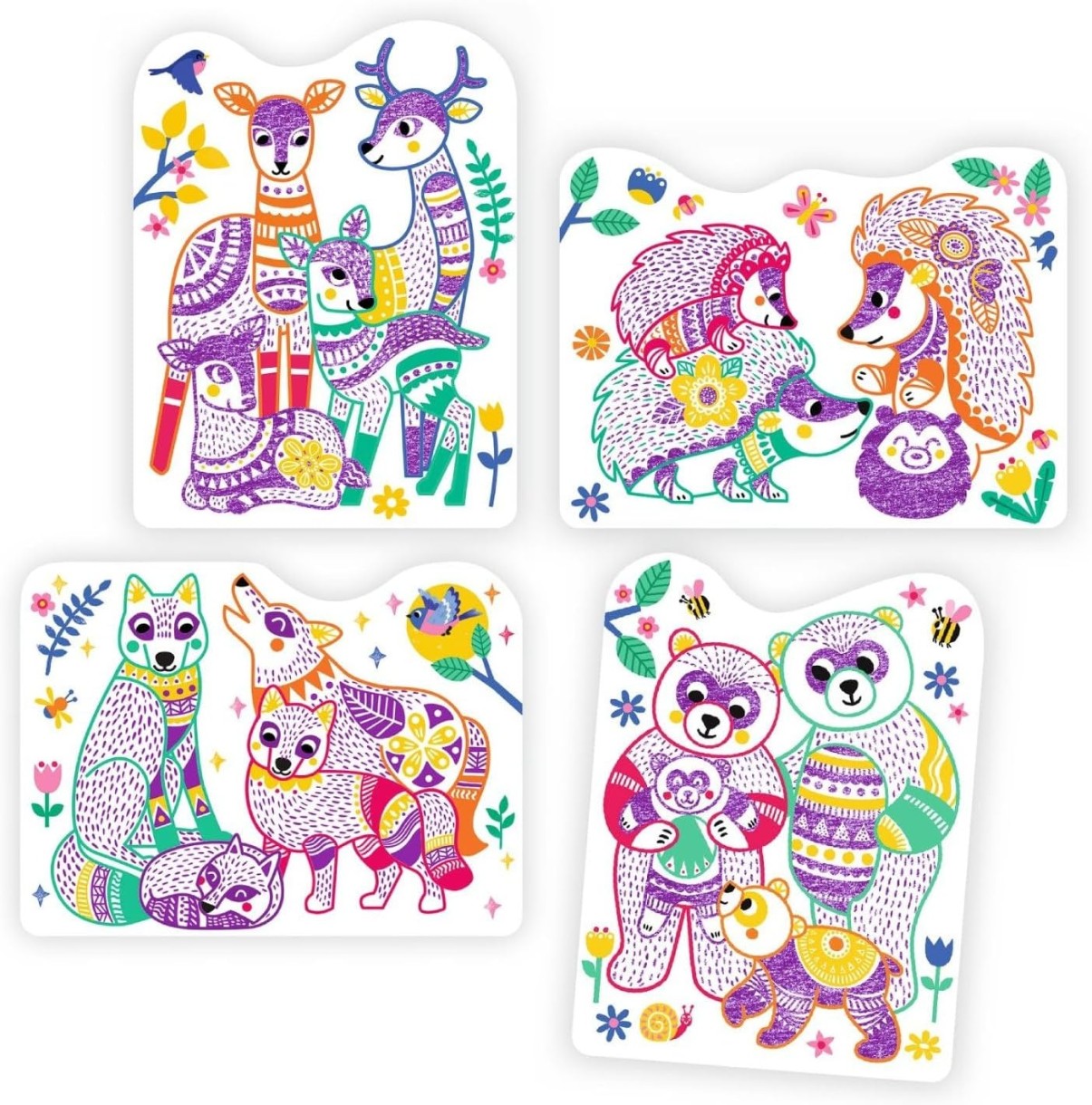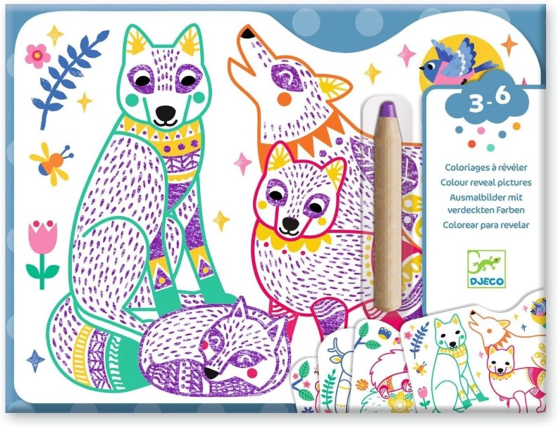 Djeco Magic Colouring – Animal Families este un set creativ adorabil, ideal pentru copiii mici care descoperă bucuria coloratului! Cu ajutorul creionului jumbo inclus, cei mici pot colora peste tot pe fișe, dar doar anumite zone se vor colora, dezvăluind detalii și surprize ascunse – un efect magic care îi va fascina.