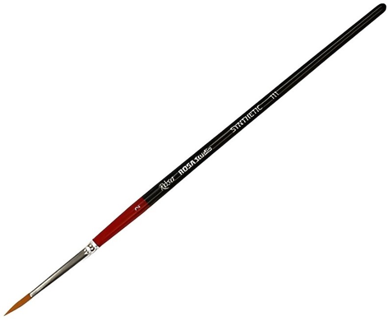 Pensulă rotundă ROSA Studio cu fibre sintetice. Perii roșii se disting prin elasticitate și rezistență excepționale. Concepută pentru aplicarea vopselei cu o grosime constantă a liniei, această pensulă excelentă este ideală pentru desen, crearea texturilor și lucrul la detalii.