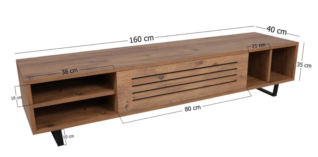 Suportul TV este realizat din panouri aglomerate acoperite cu melamină. Grosimea de 18 mm oferă rezistență și stabilitate, asigurând sprijin sigur pentru televizor și alte dispozitive electronice. Sfârșitul standurilor instabile și bun venit liniștii.