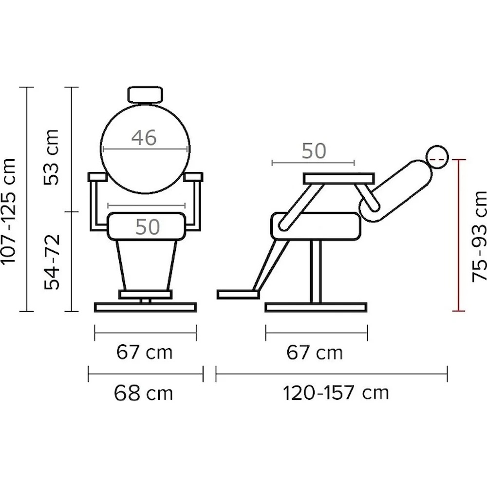 - înălțime / lățime / adâncime șezut: 54–72 / 50 / 50 cm