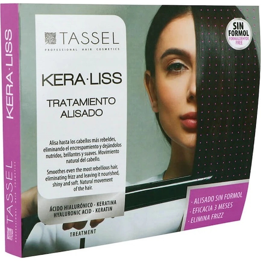 Complexul Tassel Kera.Liss este un sistem profesional pentru îndreptarea intensivă, refacerea și hrănirea părului. Formula combină puterea keratinei cu hidratarea profundă oferită de acidul hialuronic, asigurând un efect vizibil de netezime, densitate și strălucire încă de la prima aplicare. Produsul ajută la netezirea structurii firului de păr, reduce porozitatea, elimină efectul de puf și conferă părului efectul de „laminare”. Este ideal pentru părul uscat, vopsit, deteriorat și creț.