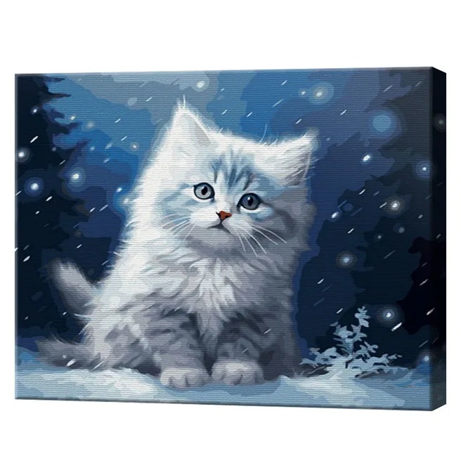 Tablou pe numere Art Gallery Premium Motănaș gri și ninsoare 40x50cm (GX46469)