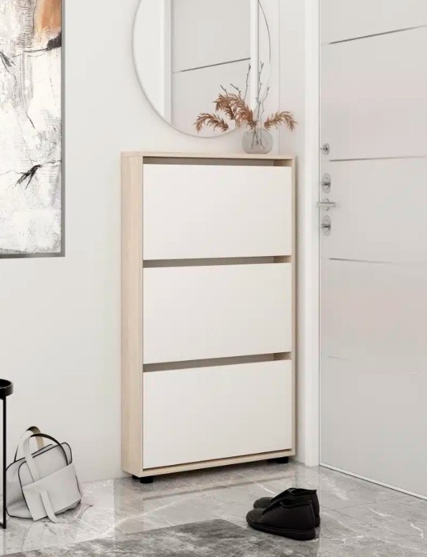 Rafturi pentru pantofi Mobildor-Lux Leo Slim 90x16x125 Oak Sonoma/White (10008559)