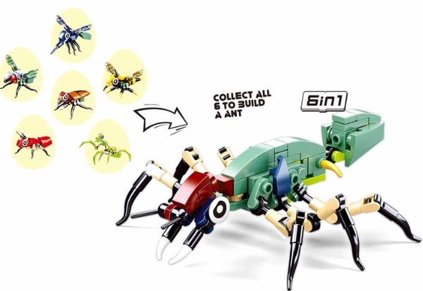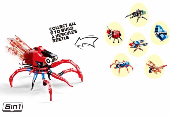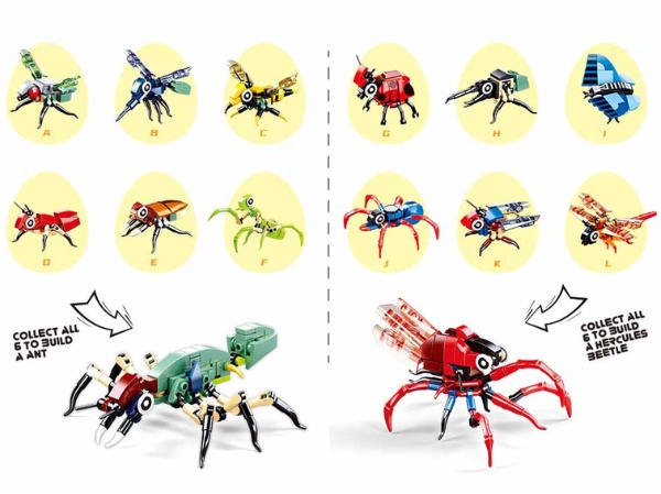 Constructorul-surpriză ”Insecte”, din seria QBricks, este o serie fascinantă de 12 specii, care sunt ascunse în ouă. Din 6 insecte mici poți obține una mare.