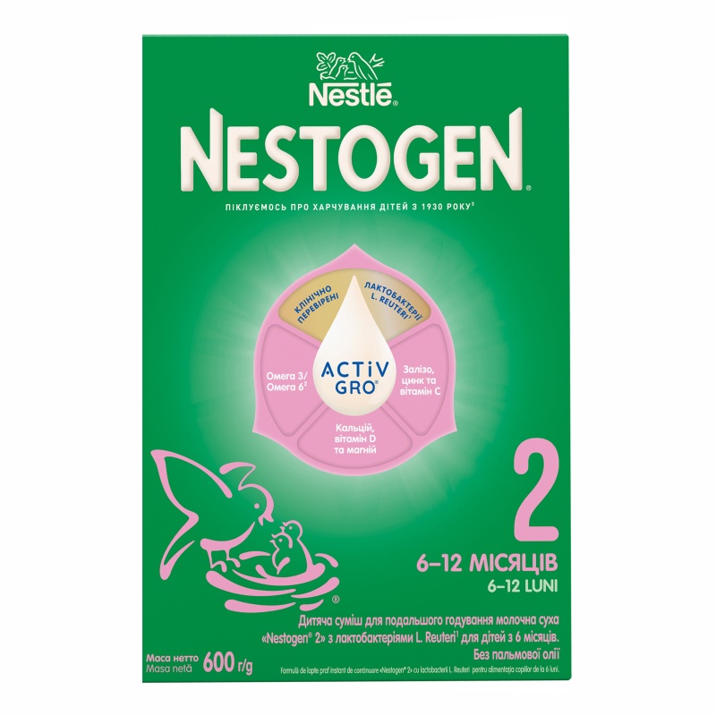 Nestogen® 2 este o formulă uscată pentru sugari, destinată sugarilor cu vârsta peste 6 luni, care conține ingrediente benefice, inclusiv lactobacili L. reuteri. Este concepută pentru a satisface nevoile bebelușilor în a doua jumătate a vieții, când încep să fie introduse alimentele solide. În această perioadă, bebelușii cresc activ și explorează lumea, așa că este important să introduceți treptat alimente noi și să alegeți formule de înaltă calitate cu lactobacili pentru hrănire mixtă sau cu biberonul, urmând instrucțiunile de utilizare.