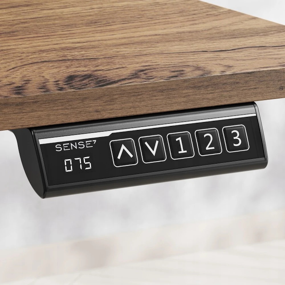 Înălțimea este reglabilă între 72–118 cm. Cu ajutorul butoanelor sus/jos poți ajusta ușor poziția blatului. Display-ul LED arată înălțimea exactă în centimetri. Sistemul permite salvarea a 3 poziții preferate.