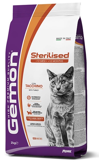Hrană uscată pentru pisici Monge Superpremium Gemon Sterilised Turkey 7kg
