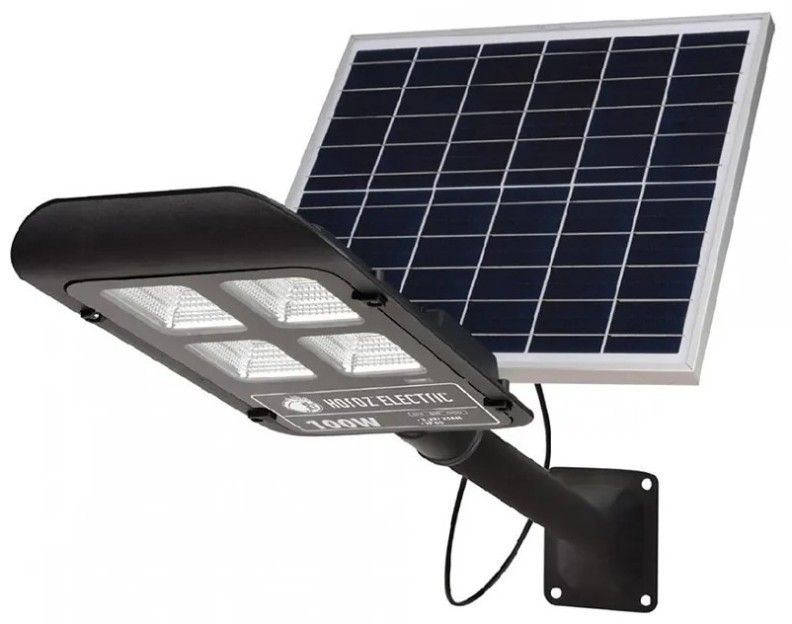 Lampa stradală LED cu panou solar LAGUNA-100 de la Horoz este soluția ideală pentru un iluminat exterior economic și ecologic. Cu o putere de 100W și tehnologie SMD LED, această lampă oferă un flux luminos de 1300 lm, fiind perfectă pentru iluminarea străzilor, aleilor, parcărilor și altor spații exterioare.