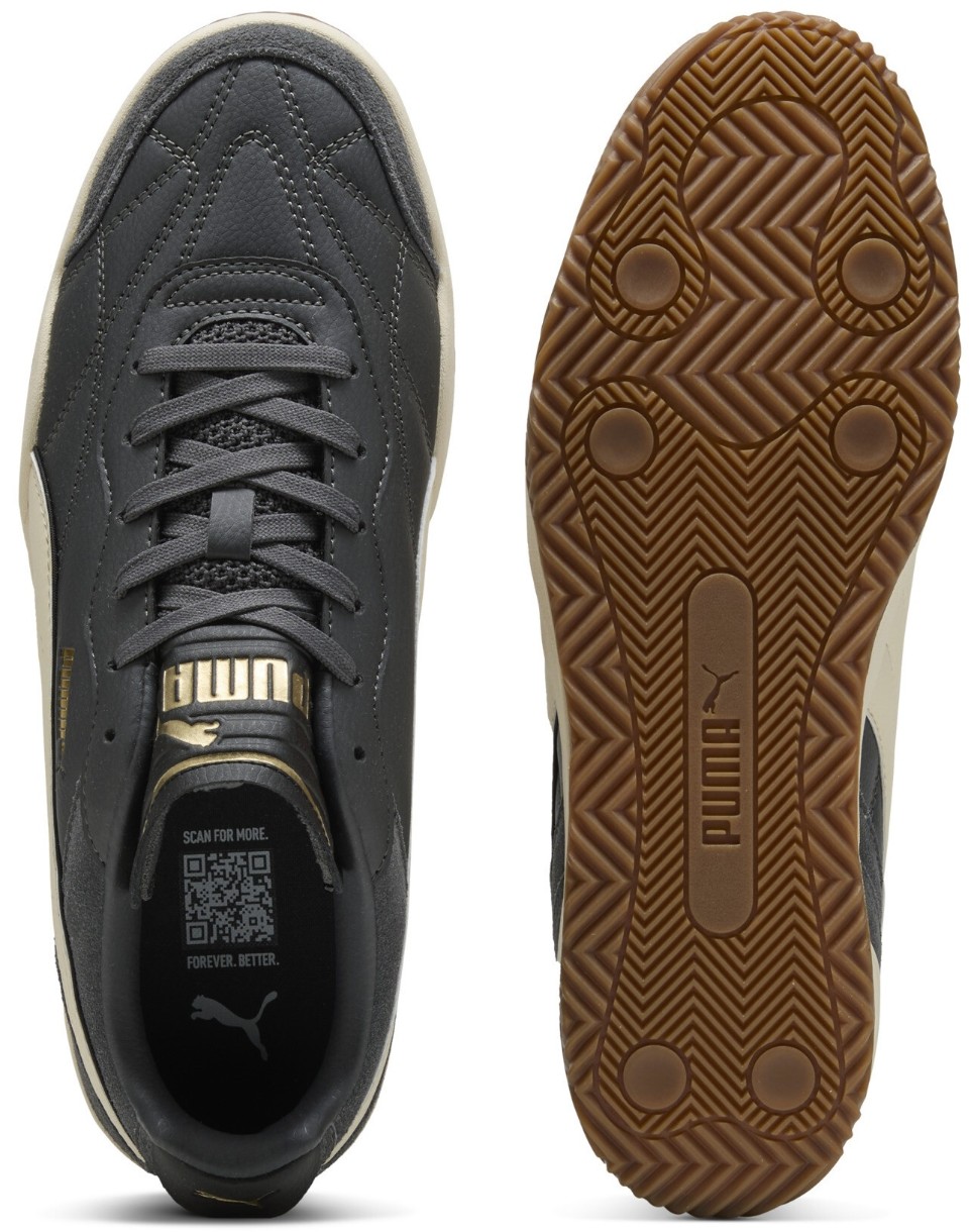 Partea superioară a acestor adidași este realizată din piele sintetică netedă, completată de inserții elegante din piele întoarsă și cusături decorative expresive, creând o textură bogată și adăugând profunzime vizuală. Această combinație de materiale nu doar arată stilat, ci și oferă durabilitate, păstrându-și forma și aspectul atractiv chiar și în cazul purtării intense. Banda laterală PUMA Formstrip, precum și logo-urile embosate de pe limbă, lateral și călcâi, completează designul și îl fac imediat recognoscibil.
