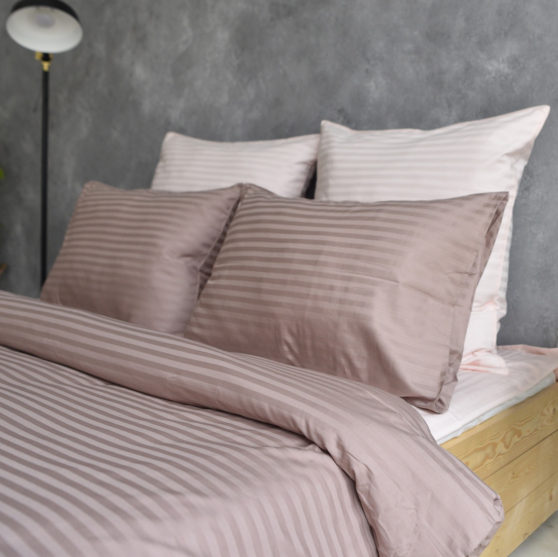 Lenjerie de pat Cottony Satin de Lux Tip Hotelier Stripe Light Brown 2 (210701)