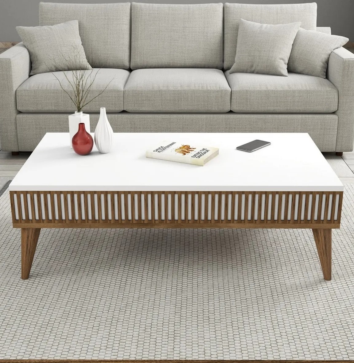 Suportul TV cu lățimea de 180 cm oferă spațiu suficient pentru articolele dedicate divertismentului. Raftul de perete, tot de 180 cm, adaugă rafinament și extinde opțiunile de depozitare. Măsuța de cafea, cu o suprafață generoasă, este potrivită atât pentru întâlniri relaxante, cât și pentru seri plăcute în familie.