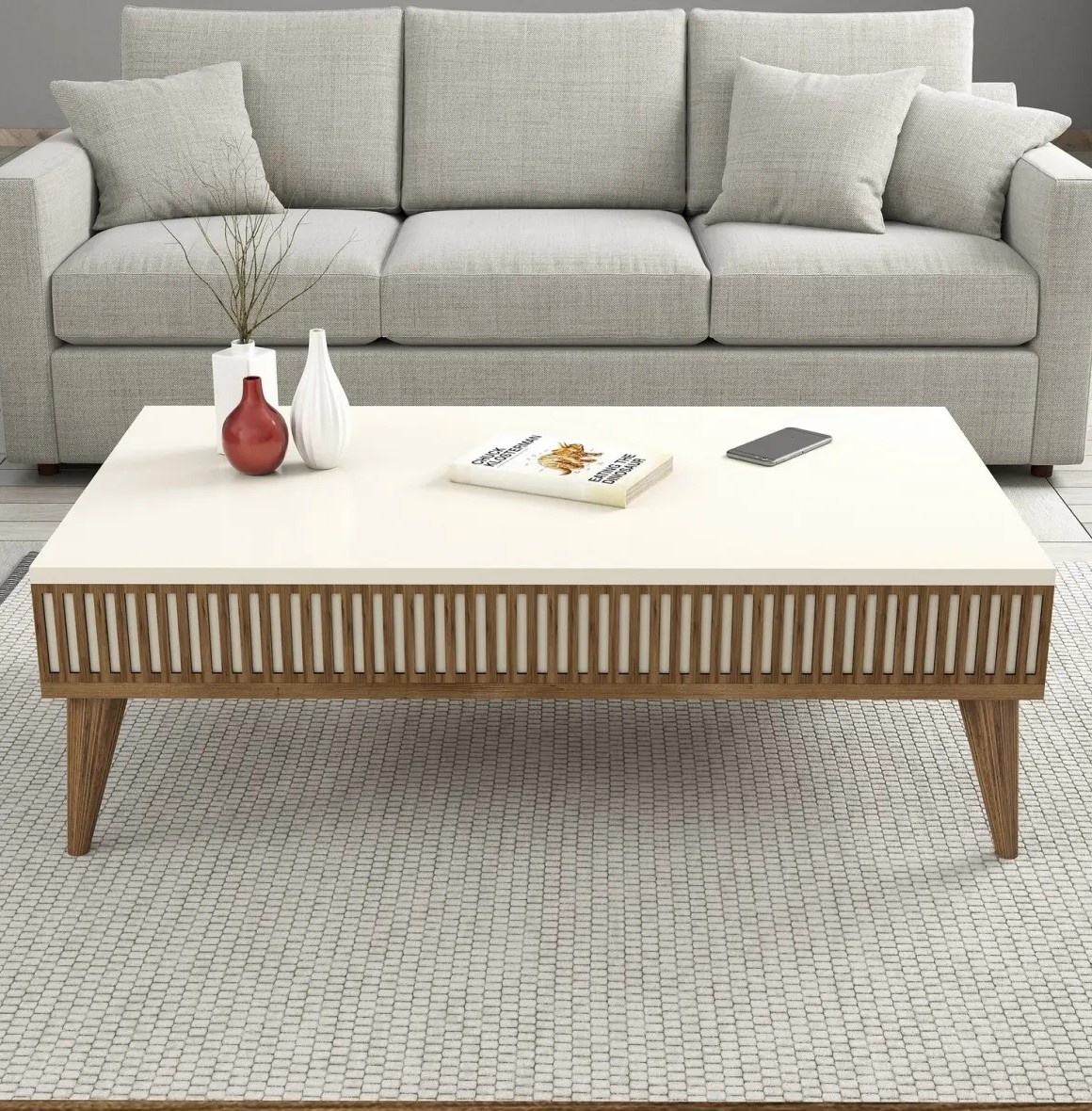 Suportul TV cu lățimea de 180 cm oferă spațiu suficient pentru articolele dedicate divertismentului. Raftul de perete, tot de 180 cm, adaugă rafinament și extinde opțiunile de depozitare. Măsuța de cafea, cu o suprafață generoasă, este potrivită atât pentru întâlniri relaxante, cât și pentru seri plăcute în familie.