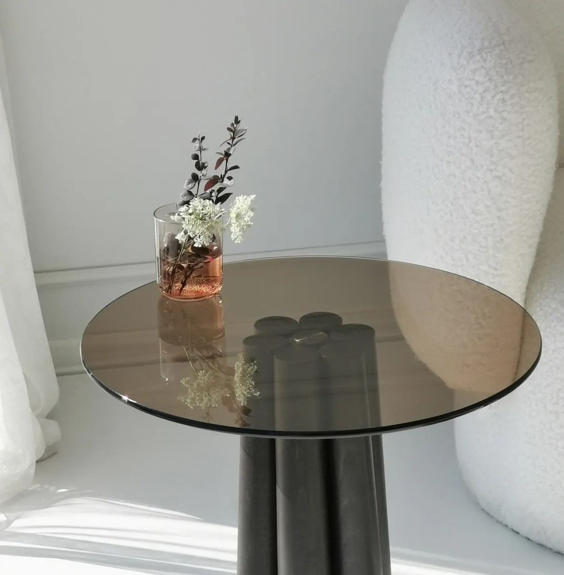 Fabricată din sticlă 100% călită, măsuța emană rafinament și finețe. Suprafața netedă adaugă un aspect modern decorului, iar structura rezistentă din fag garantează o durabilitate remarcabilă.