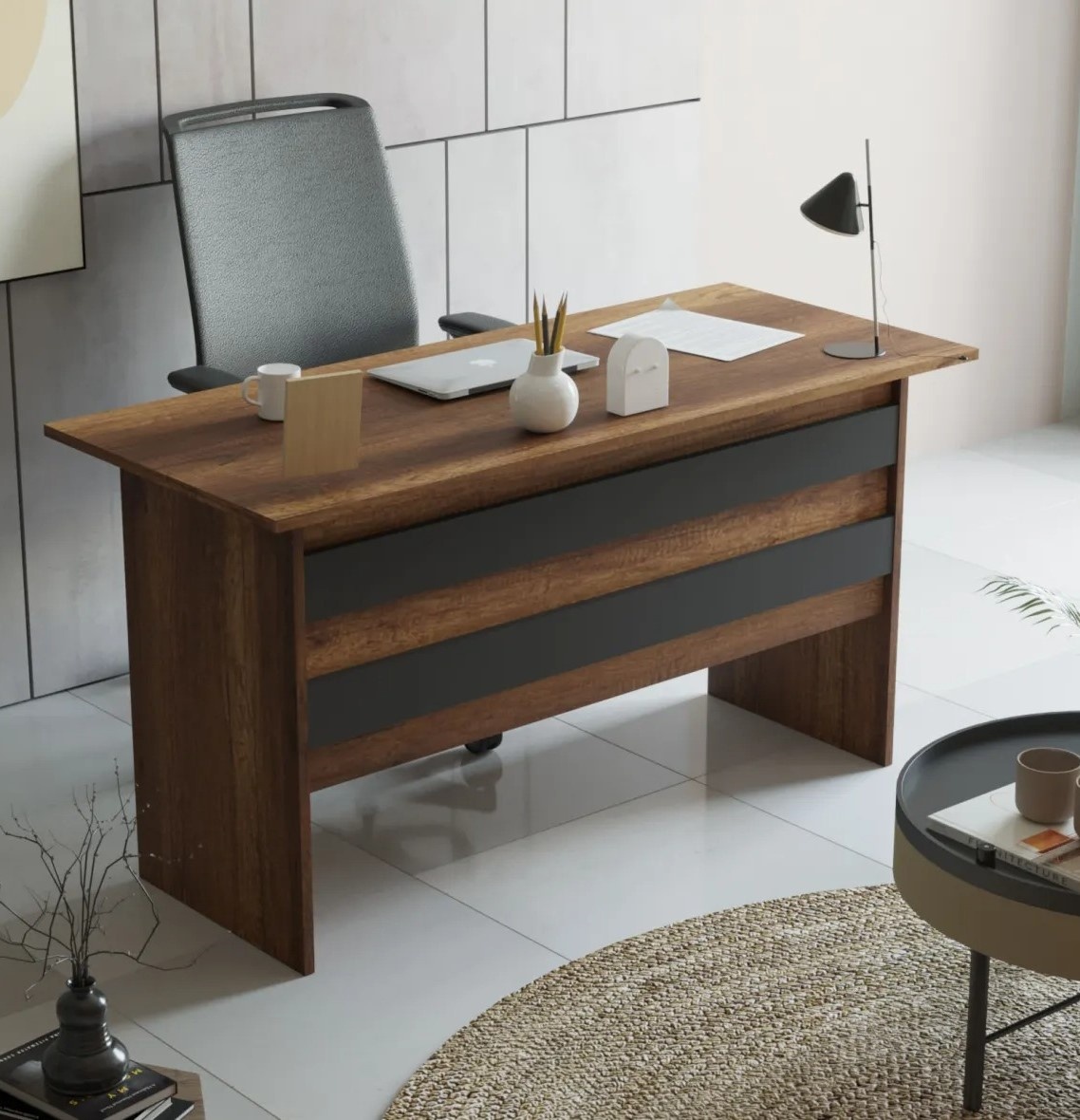 Cu designul său elegant și modern, acest set de mobilier adaugă rafinament oricărui birou. Liniile curate și estetica minimalistă creează un aspect contemporan, atemporal și în tendințe.