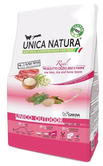 Hrană uscată pentru pisici Gheda Unica Natura Outdoor Raw Ham & Rice 1.5kg