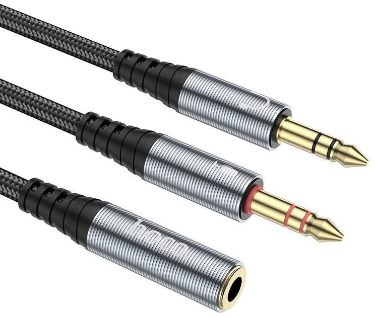 Cablu Hoco UPA21 2-in-1 female to 2 male Metal Gray