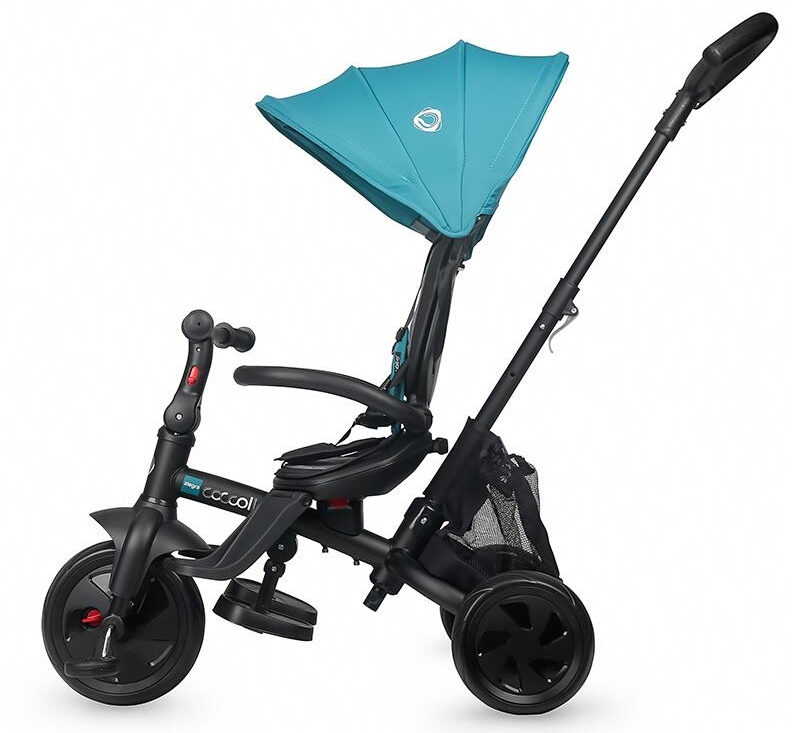 Alegra este echipata cu un suport de picioare pliabil si sistemul roata libera, astfel incat poate fi impinsa de parinte cu usurinta, dar ofera si trecerea la modul pedalare instant si fara prea multi pasi de urmat. Copertina este pliabila, oferind protectie impotriva razelor uv, dar si posibilitatea de a fi ferita de priviri atunci cand cel mic simte nevoia sa constientizeze prezenta parintelui in spatele sau. Tija auxiliara a tricicletei este telescopica, astfel chiar si parintii mai inalti pot impinge produsul in mod confortabil. Franele de pe rotile din spate ofera o stationare sigura.