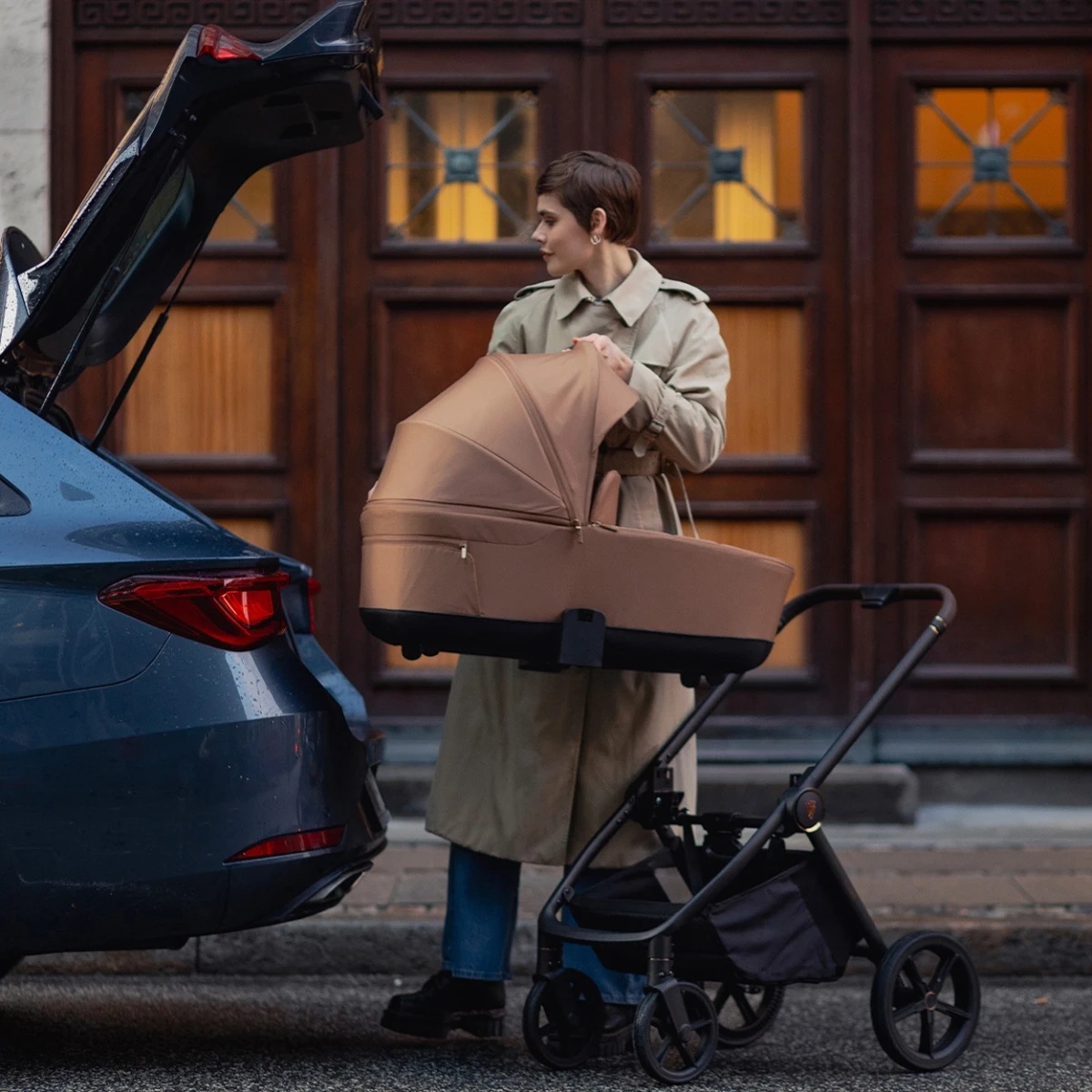 O singură mișcare este suficientă pentru a plia cu ușurință cadrul căruciorului și a-l transporta fără efort, fără a vă simți îngreunat de greutatea sa. Înțelegem că designul ușor este căutat nu doar de familiile care urcă scările zilnic, ci și de fiecare mamă care, așa cum se întâmplă adesea în oraș, jonglează cu mai multe sarcini simultan. Cu Claro, puteți face exact asta fără stres. Pliați căruciorul în câteva secunde și apoi îl puneți peste umăr cu cureaua specială pe care am inclus-o pentru confortul dumneavoastră. Deși cadrul Claro este ușor, construcția sa din aluminiu este extrem de durabilă. Da, acesta este un cărucior care va fi cu copilul dumneavoastră ani de zile.