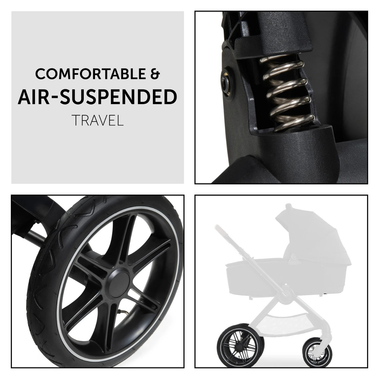 De înaltă calitate, confortabil și sigur – puteți utiliza Walk N Care Air mai întâi cu landoul și mai târziu cu scaunul confortabil, făcând setul potrivit de la naștere până la aproximativ 4 ani și susține până la 25 kg (22 kg copil + 3 kg coș). Suspensia, roțile cu aer și cadrul ușor, dar robust din aluminiu fac conducerea ușoară pe orice teren. Mânerul telescopic reglabil pe înălțime oferă părinților o manipulare prietenoasă cu spatele și mai mult spațiu pentru picioare. Designul premium este realizat din materiale durabile, ușor de întreținut, cu protecție UV 50+, mâner și bară de protecție cu aspect de piele, precum și o saltea cu husă de bumbac lavabilă.