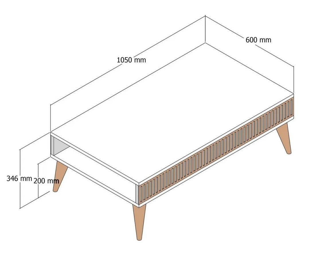Nu numai că măsuța de cafea emană eleganță, dar oferă și un spațiu amplu de depozitare. Dimensiunile generoase de 105 cm lățime, 34.6 cm înălțime și 60 cm adâncime oferă suficient spațiu pentru a vă expune cărțile preferate, revistele sau obiectele decorative. Designul versatil îi permite să se integreze perfect în orice decor interior, ceea ce o face o piesă practică ce completează stilul dvs. unic.