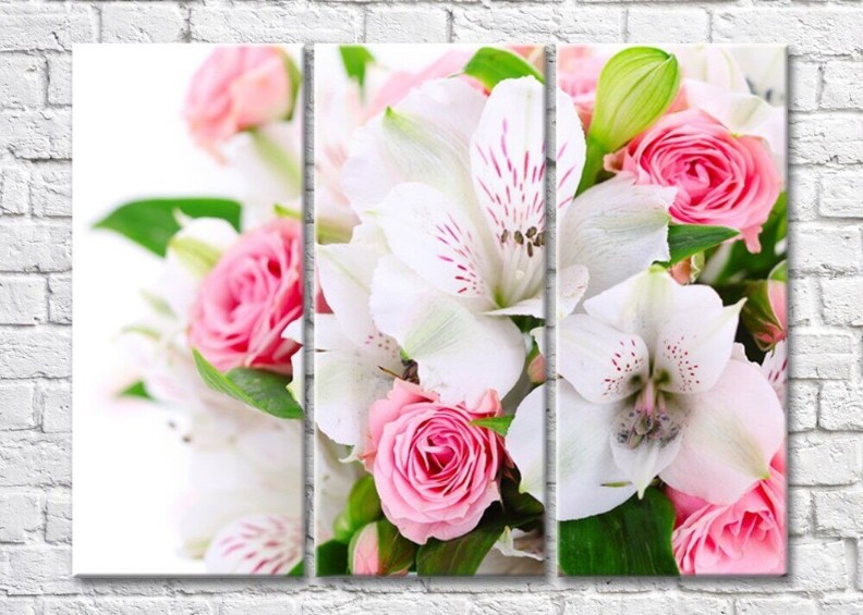 Pictură Magic Color Bouquet of White alstroemeria and Pink roses (500112)
