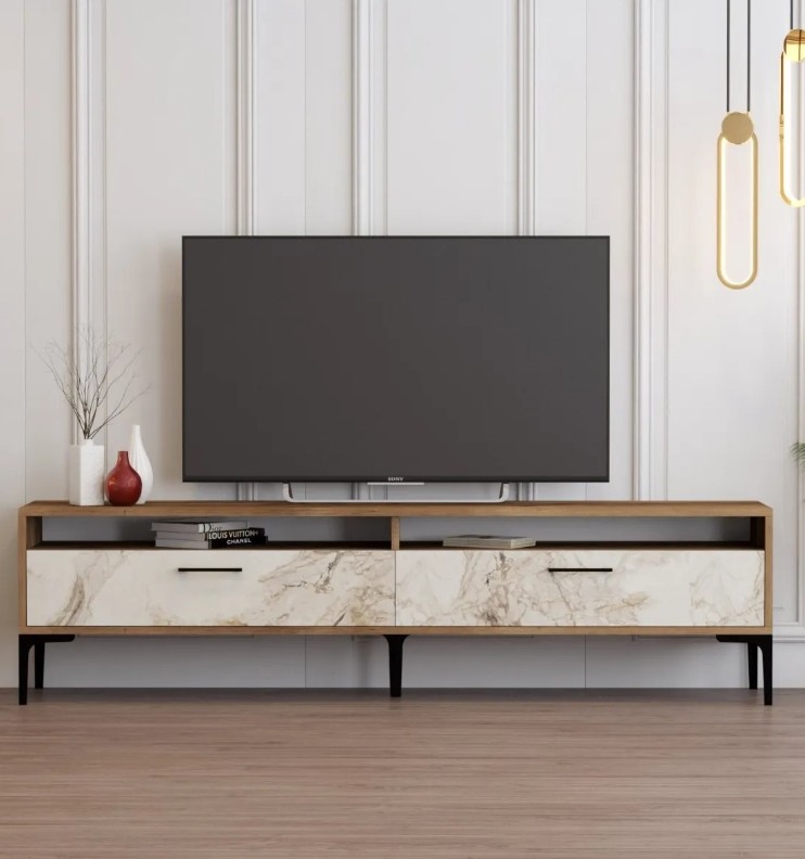 Comodă TV Trendy Istanbul Walnut/White Marble/Black 180x47x35cm GTR000106