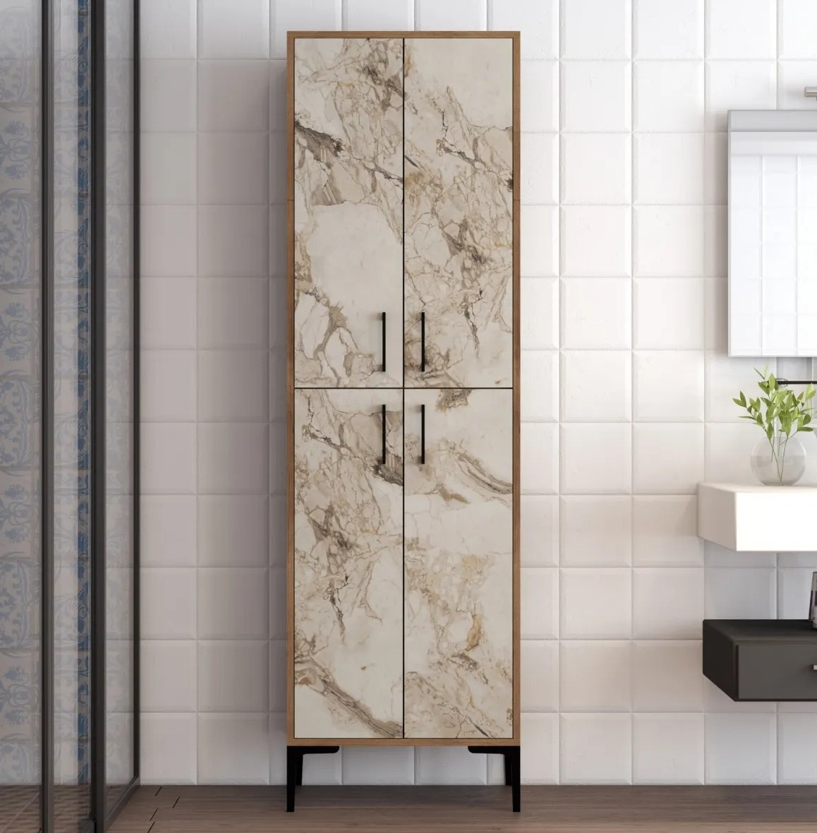 Dulap baie Trendy Berlin A Walnut/White Marble 202.6x60x35cm GTR006634