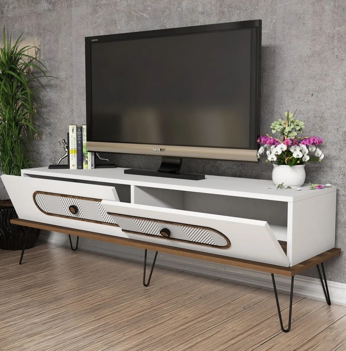 Te-ai săturat de camera de zi învechită și dezordonată? Modernizează-ți spațiul cu suportul modern și elegant pentru televizor. Proiectat cu un concept contemporan, acest stand TV va ridica instantaneu aspectul și senzația zonei de living.