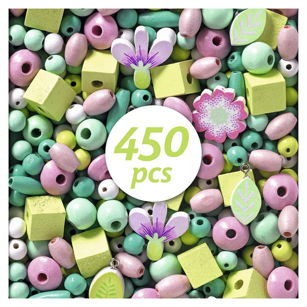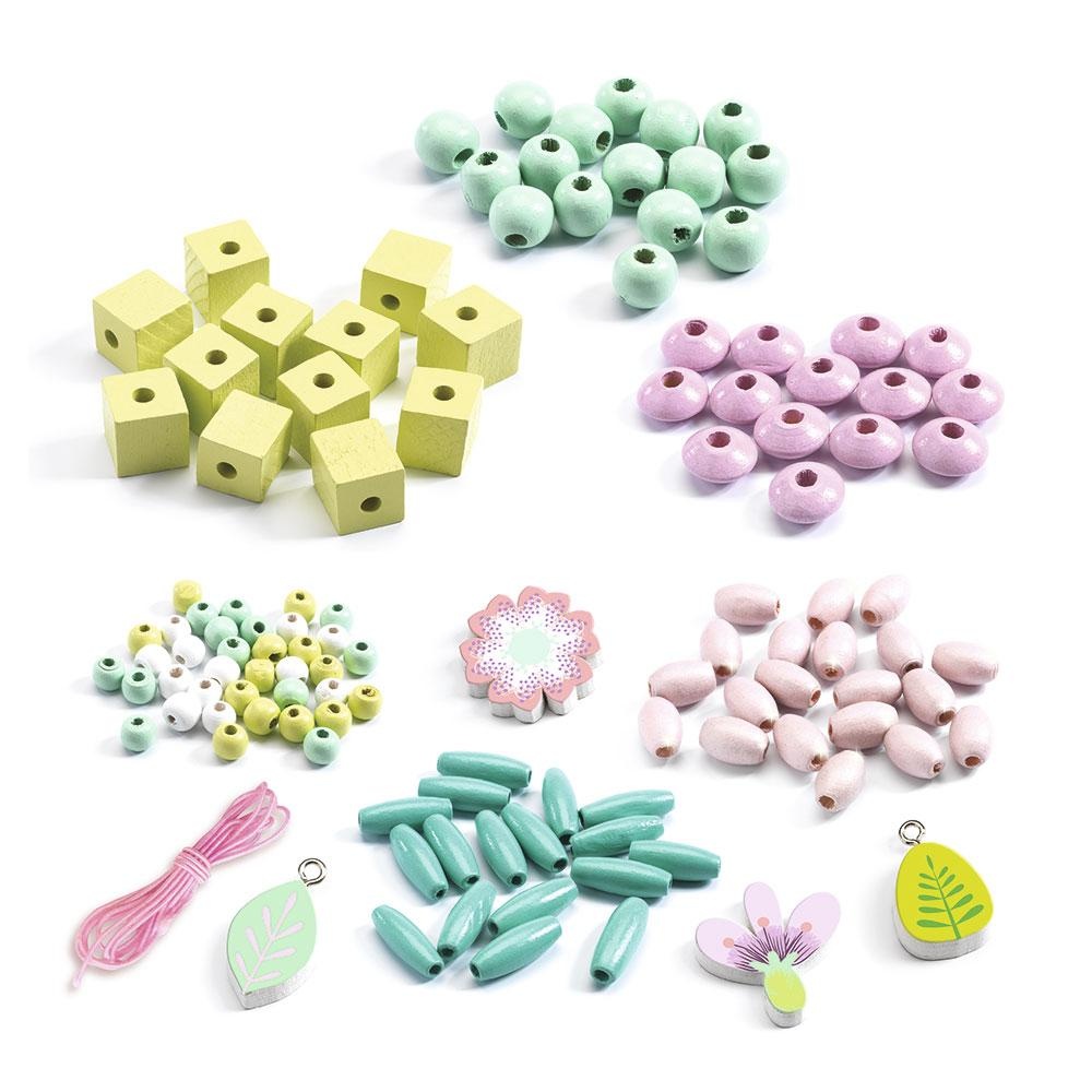 Set de realizare a bijuteriilor Djeco Wooden Beads Flowers and Foliage DJ09808