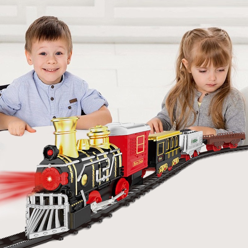 Setul este format din 3 vagoane, sine, realizate cu precizie si frumos finisate, care pot fi aranjate dupa propria imaginatie. Mai mult, trenul emite sunete ceea ce ii ofera si mai mult farmec.