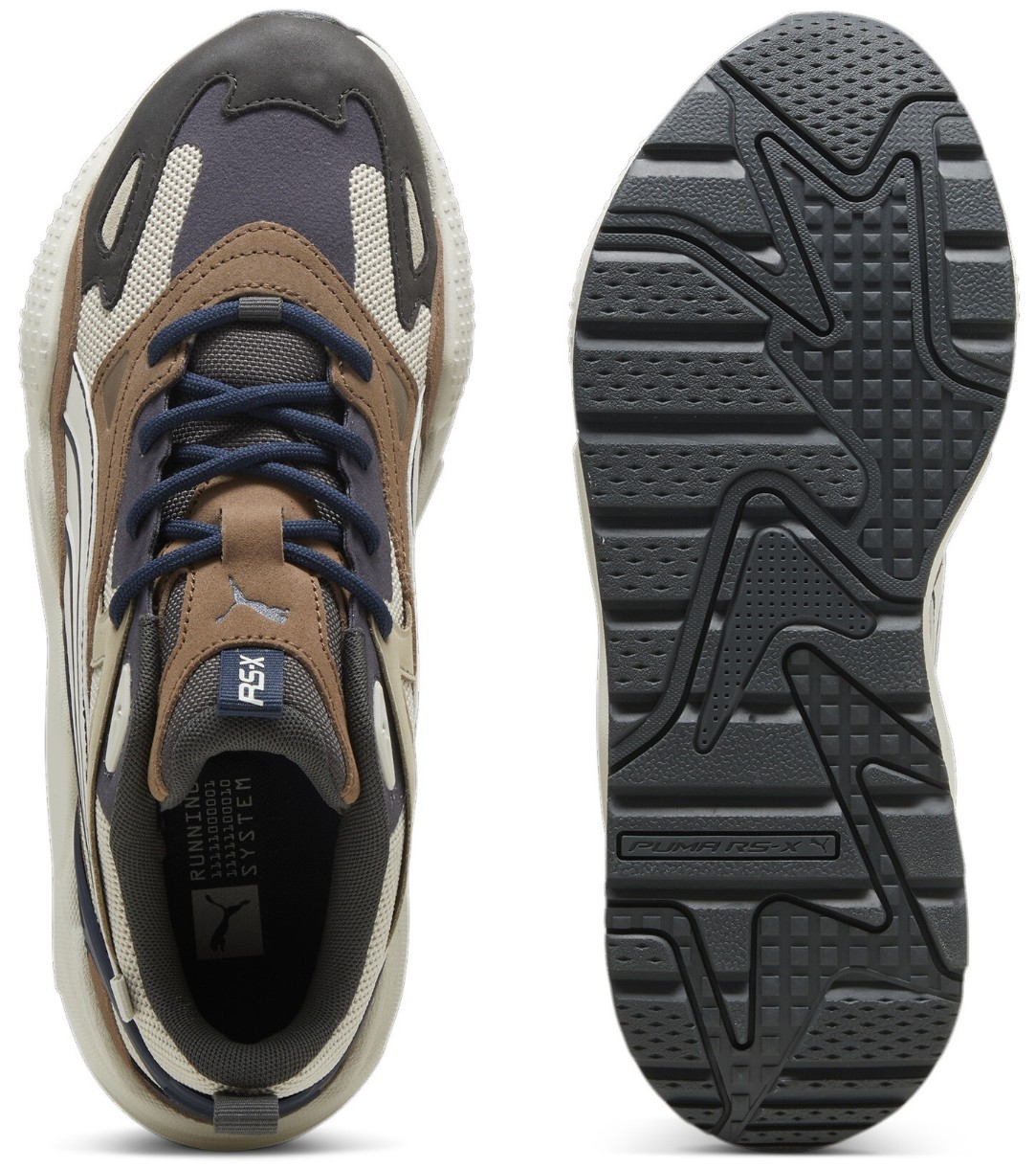 Cadrul în formă de A din TPU turnat pe părțile laterale și detaliul din TPU turnat pe călcâi cu marca RS-X asigură o susținere excelentă a piciorului și stabilitate în timpul mișcării. Talpa intermediară din poliuretan garantează amortizare și confort la fiecare pas.