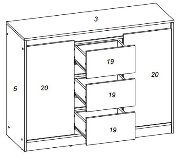 Comodă Yasen Venera 2D3S Stejar Craft Gri/Alb