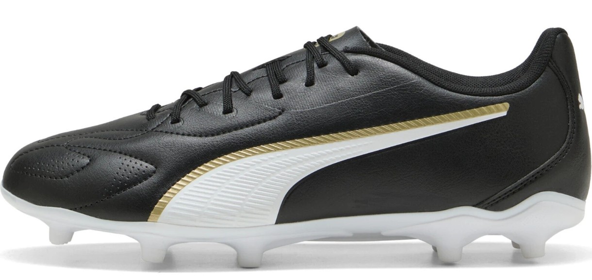 Puma KING 20 Play FG/AG — dincolo de timp și compromisuri. Acești pantofi continuă celebra linie KING, oferind atingere precisă a mingii, control și încredere pe întreaga durată a jocului.
