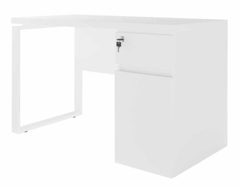 Masă destiantă pentru birou/calculator dotată cu dulap cu poliță și sertar dotat cu încuietoare. Include două chei.