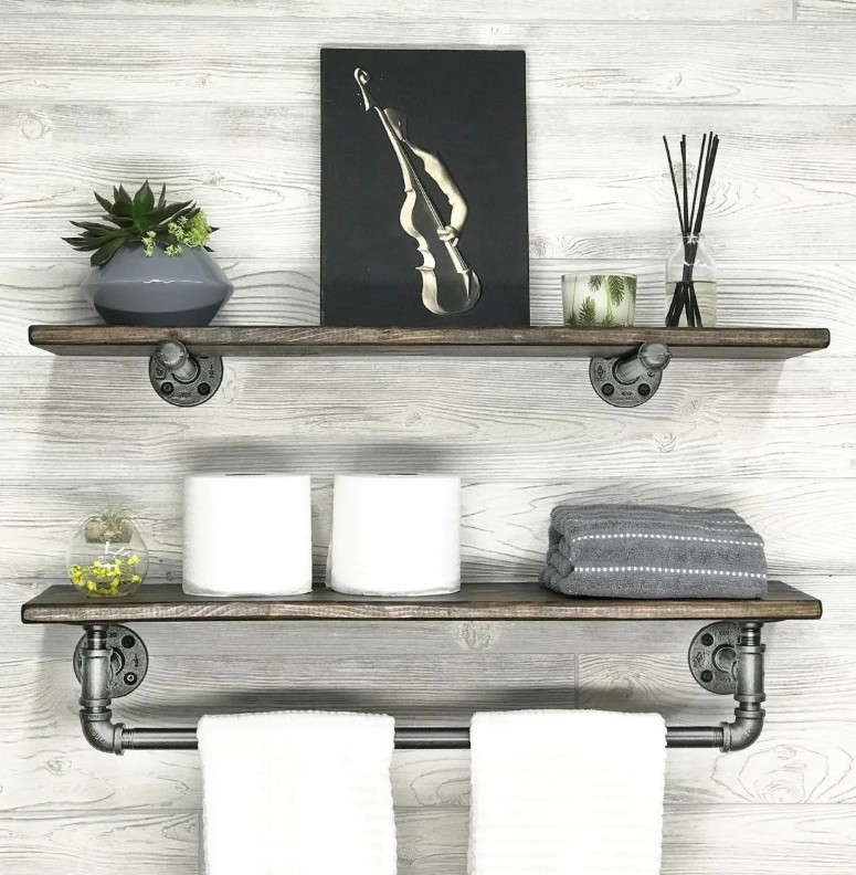 Raft de perete Trendy Boruraf113 Walnut/Black 60x17x14cm GTR005614 2pcs