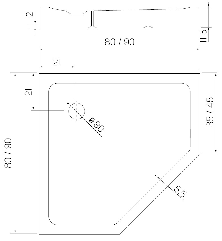 Cadița de duș New Trendy Mild Stone B-0519 90x90x11.5 (17220)
