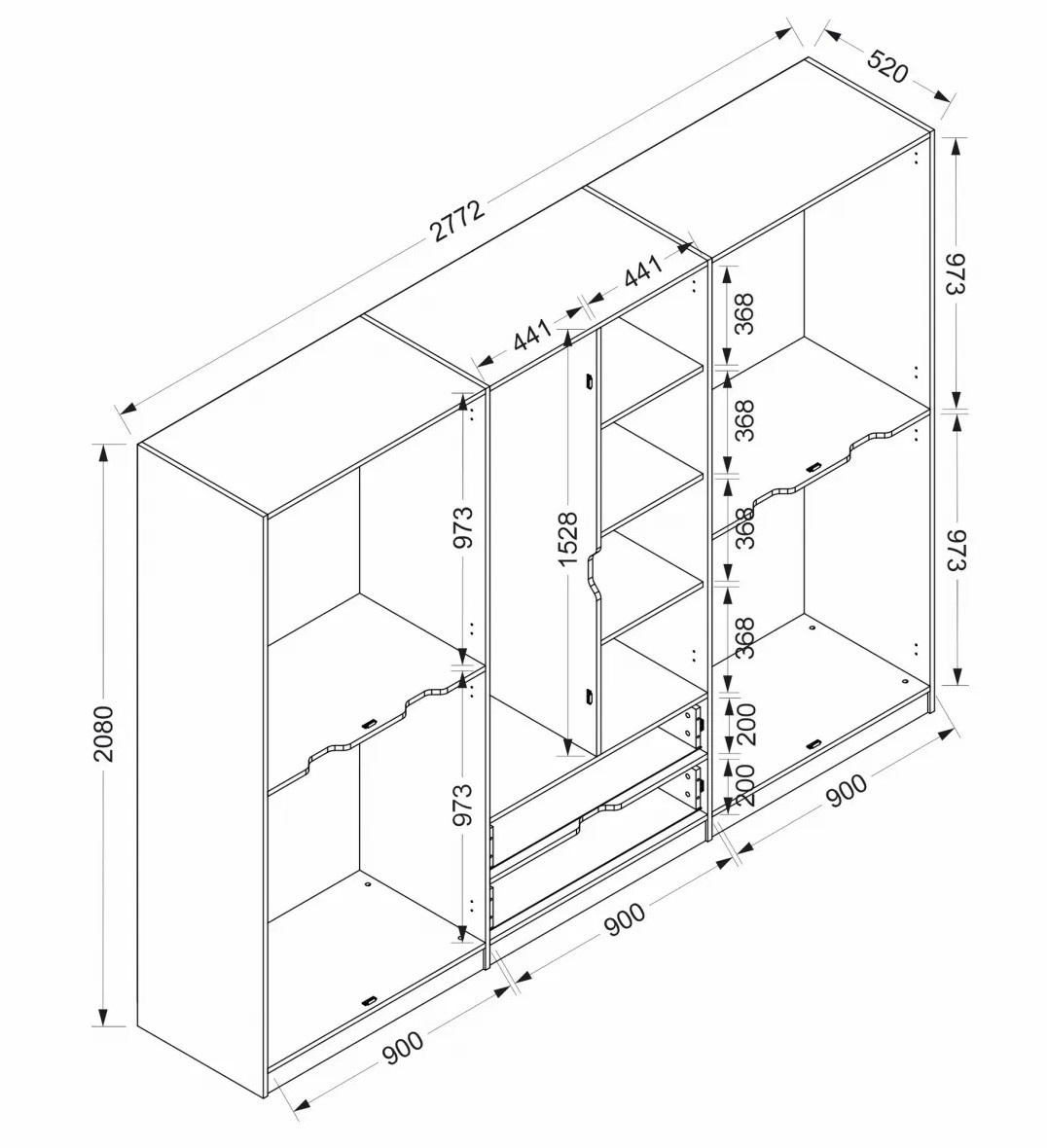 Lățime208 cm