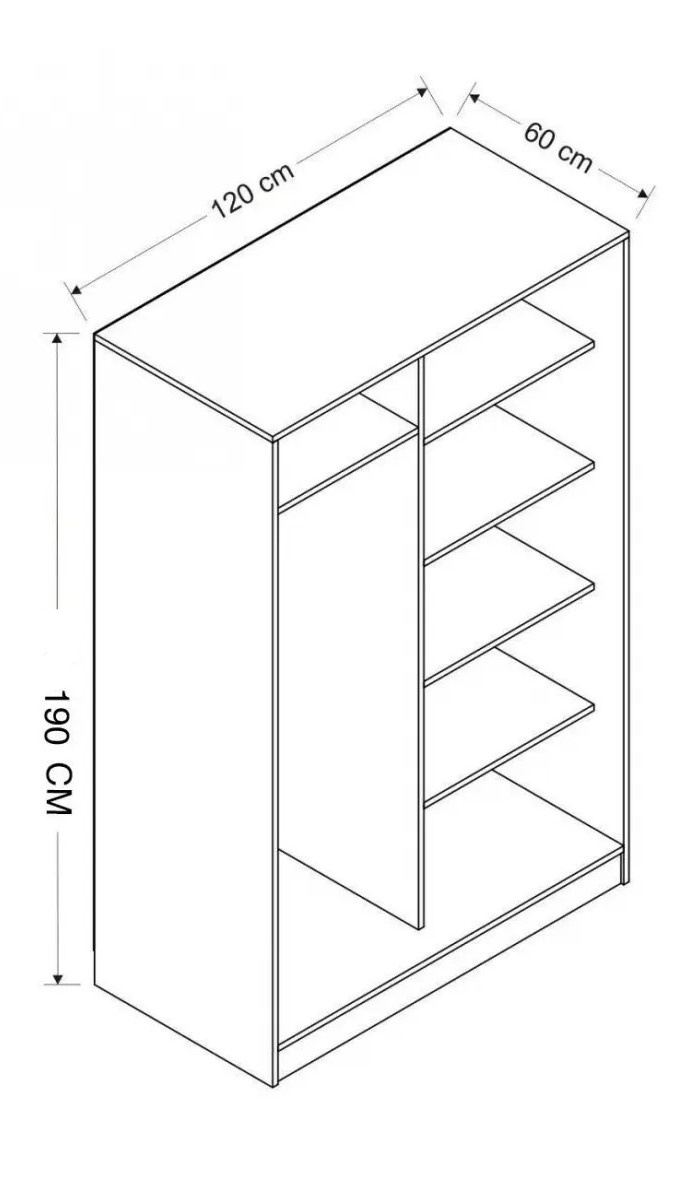Cu dimensiuni generoase, dulapul oferă un spațiu de depozitare suficient pentru toate lucrurile dumneavoastră. De la haine la accesorii, totul își va găsi locul, menținând dormitorul organizat și fără dezordine.