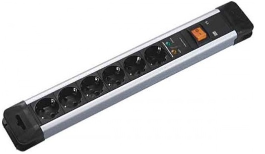 Multipriza Bachmann CONNECTUS, cu 6 prize Schuko la 35 grade, cu protectie pentru copii, protectie la supratensiune, intrerupator basculant bipolar iluminat, cordon de alimentare 2 m cu fisa Schuko injectata la 90 grade.